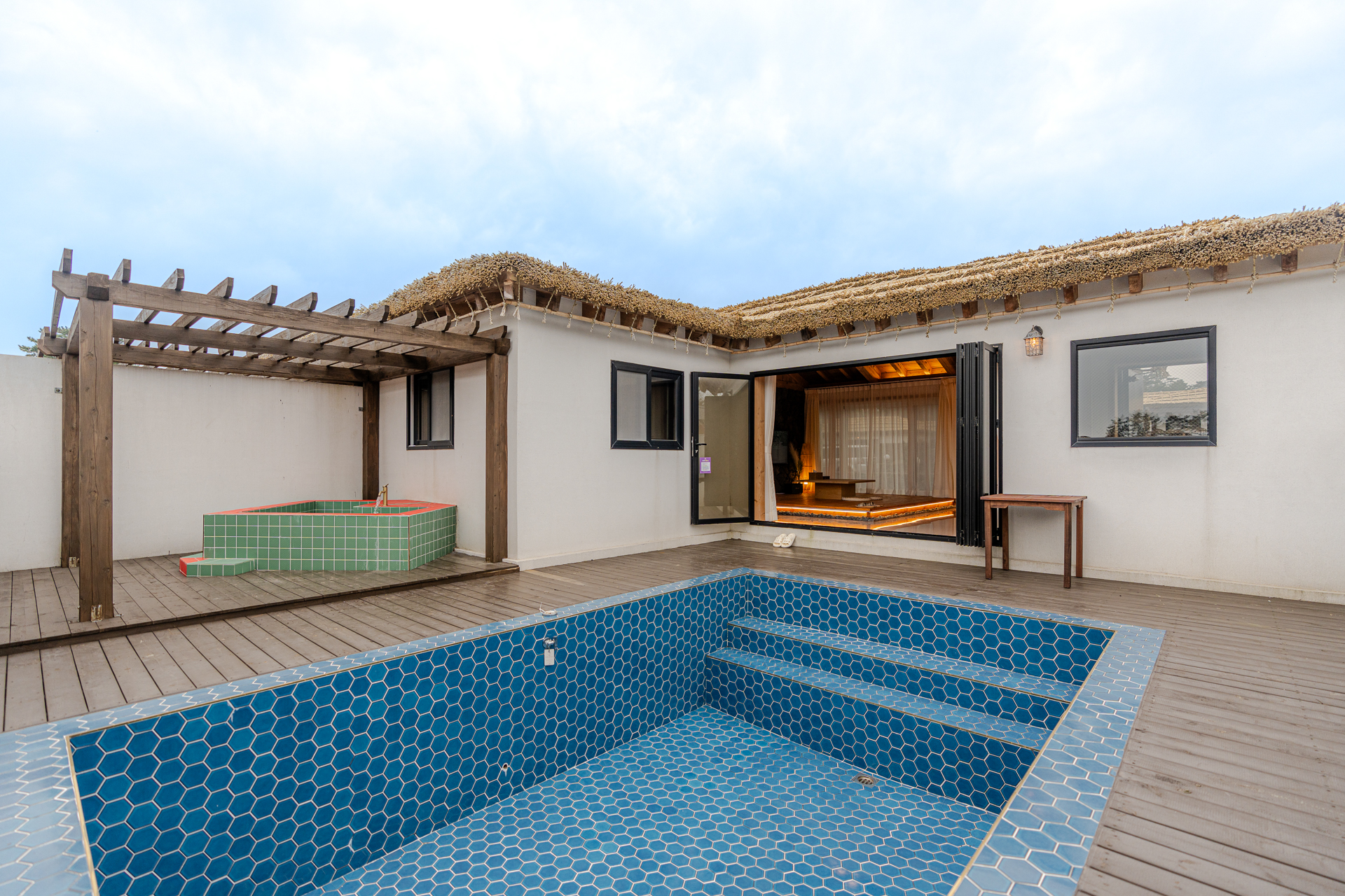 이국적인 정취를 담은 테라스와 자쿠지 한옥 풀빌라