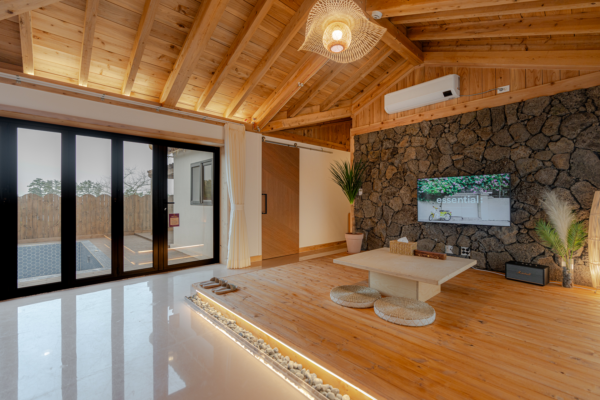 세련된 디자인으로 꾸며진 테라스와 자쿠지 한옥 풀빌라