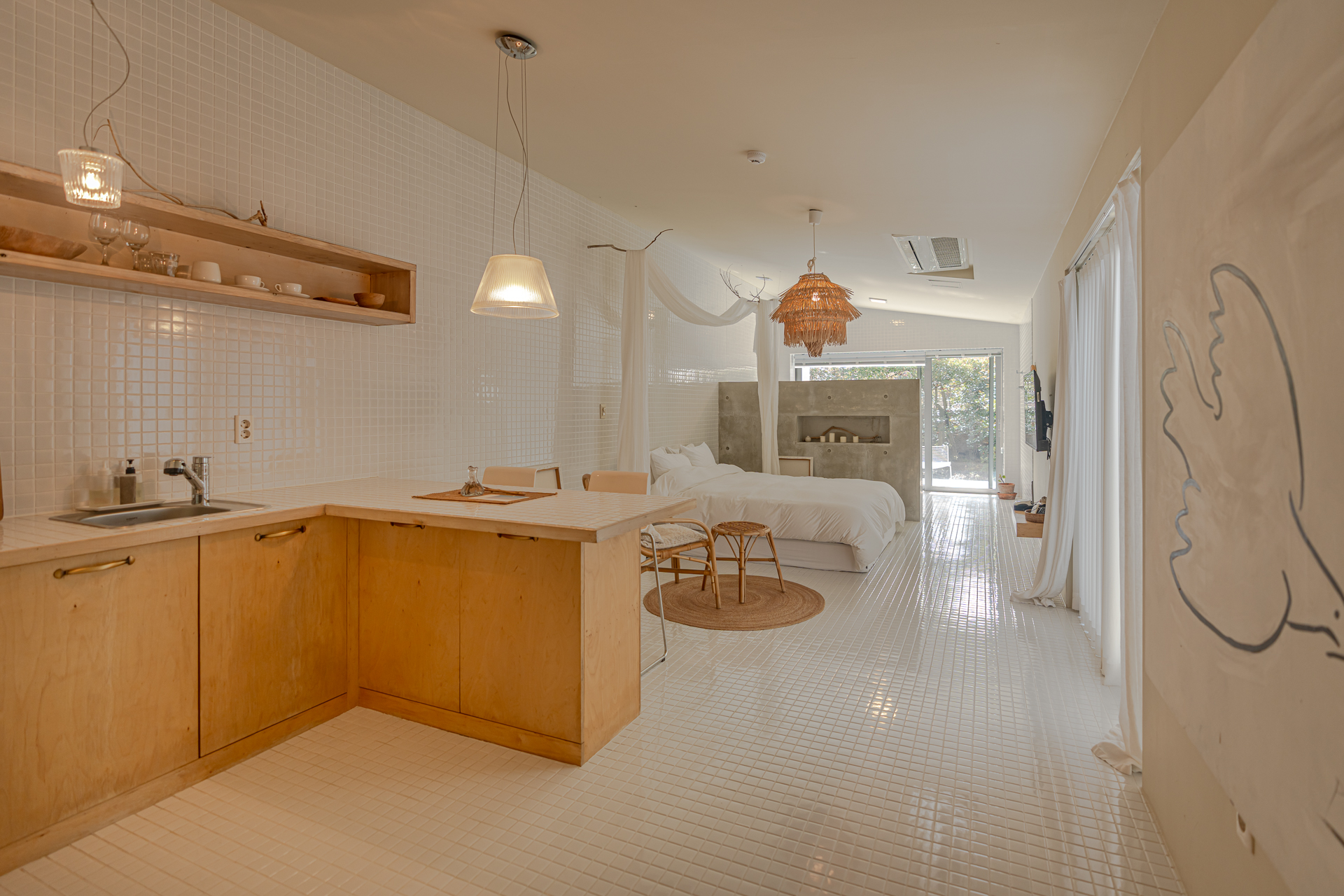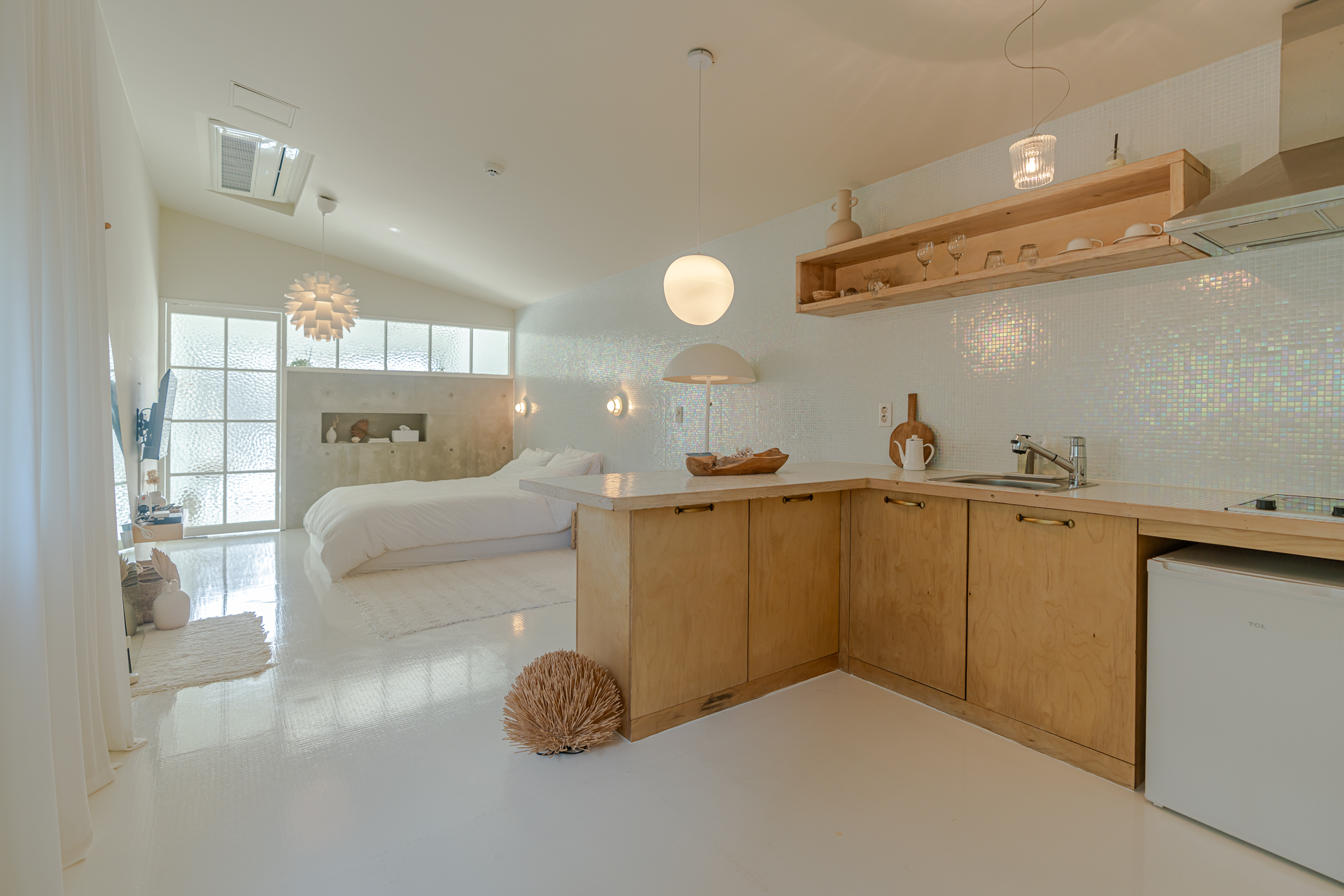 안녕하세요 :) 화이트와 반짝 거리는 타일의 심플하고 세련된 공간입니다. 별 객실은 1박부터 예약 가능합니다 :) 기준 인원 2인 (최대 2인) 1. 기본 시설 : 침대, 시스템 에어컨, 냉장고, 인덕션 ,TV, 생수2병 2. 욕실 용품 : 욕조, 페이스 타올, 손 세정제, 린스, 샴푸, 바디클렌져 (치약,칫솔은 구비 되어있지 않습니다. ) 3. 취사도구 : 전자레인지, 전기포트, , 냄비, 후라이팬, 그릇, 수저, 가위, 와인잔,컵,기타 [숙소 20분 내 관광지] - 한담 카페거리 - 곽지 해변 - 애월 해안도로 - 금오름 - 아르떼 뮤지엄 - 918 파크 * 예약 인원 외 외부인 초청 절대 금지합니다. 펜션은 거주 공간이 아닌 숙박 시설임을 양해 부탁 드립니다. * 운영 상황에 따라 최소 숙박 일을 2일 이상으로 판매될 수 있습니다. [기타 안내 사항] 숙소 내에 전체 금연 구역이므로 흡연으로 인한 비용이 발생할 수 있습니다. 숙소 운영 및 편안한 숙소 사용을 위해, 예약 확정 시 약관과 조건에 대한 사항을 숙지하시기를 권장 드립니다. 방역 업체를 통해 전문적, 주기적으로 방역을 진행 중이고 저희쪽 에서도 추가로 방역을 실시하고 있습니다만, 지역 특성상 곤충 및 해충이 유입될 수 있다는 점 양해 부탁드립니다. (이로 인한 환불은 불가 합니다.) 손님의 안전과 도난 방지를 위해 주차장 방향으로 cctv가 설치되어 있습니다. 시설물과 비품을 훼손 하였을 시 퇴실 전 미리 말씀 부탁 드립니다. 반려 동물 입실은 불가 합니다. 부가 서비스나 시설 이용은 숙소나 날씨 상황에 따라 제한될 수 있습니다. 이로 인한 숙박 비용 환불(일부 보상)은 불가 합니다. 연박 시 중간 청소는 진행되지 않는 점 양해 부탁 드립니다. 객실 최대 인원 초과 시 추가 요금이 발생하거나 입실이 거부될 수 있습니다. * 환불 규정 안내 * (체크인 날짜 기준.) - 30일 이전 100% - 14일 이전 50% - 7일 이전 30% - 그 외 환불 금액 없습니다.