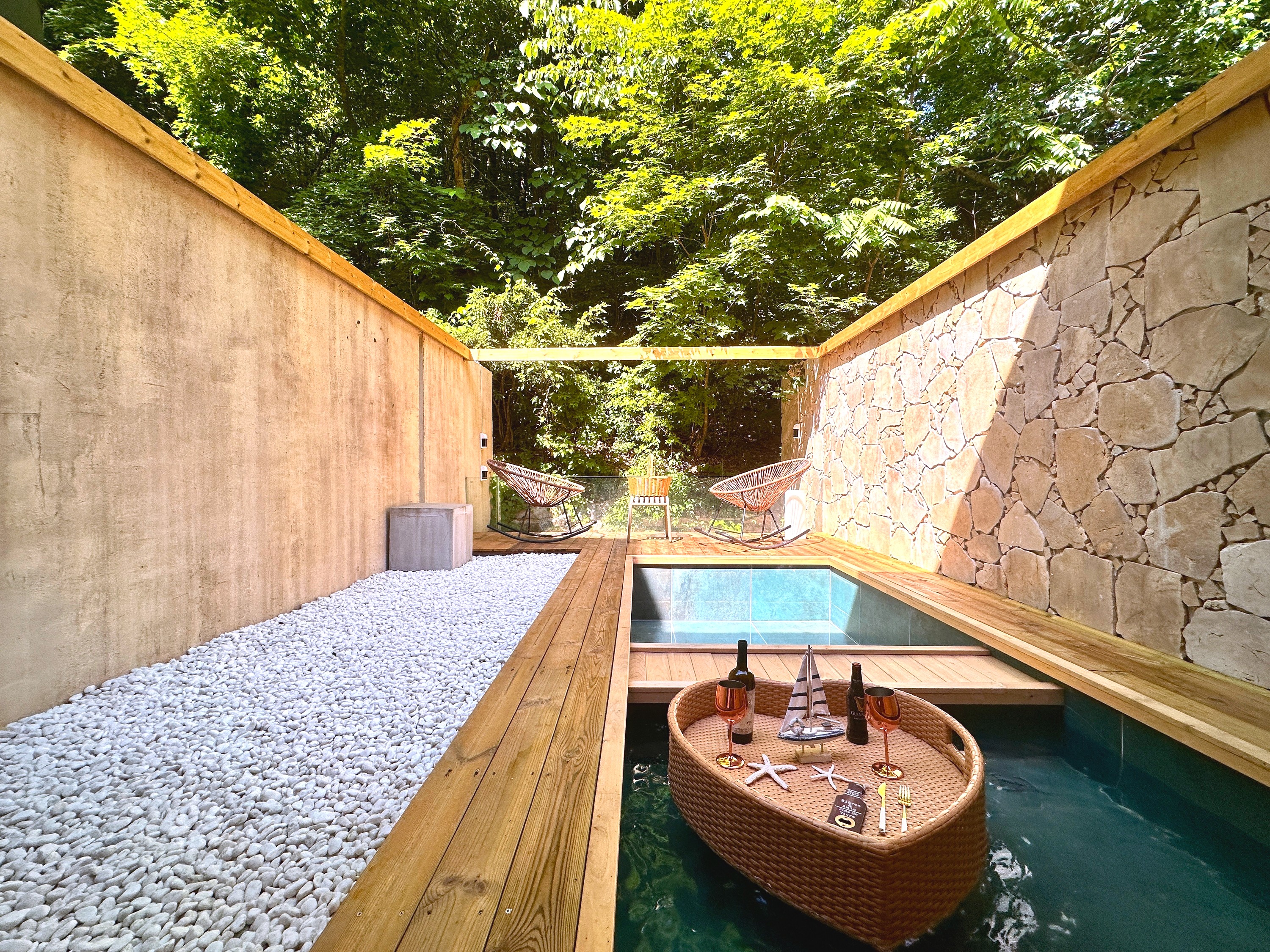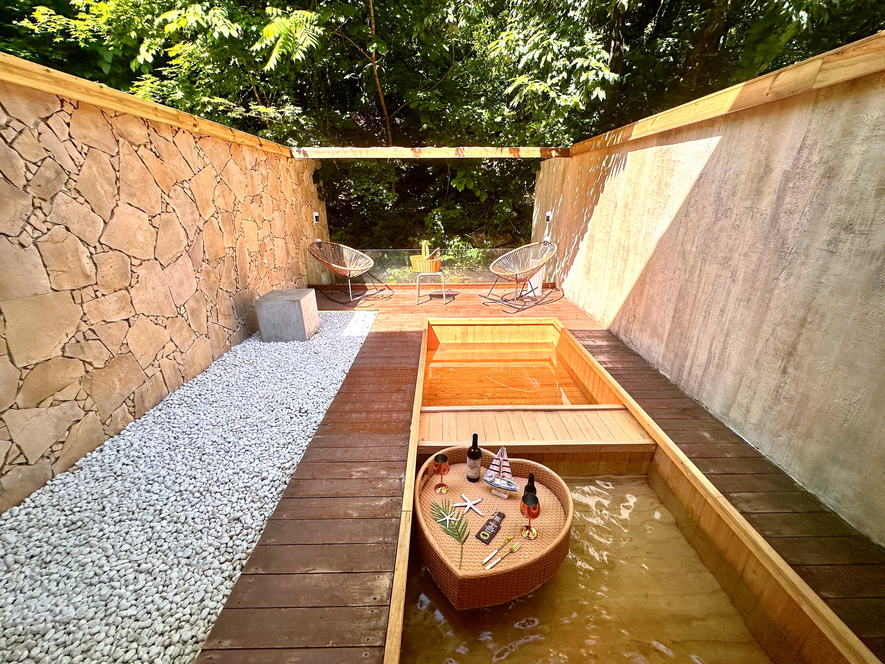 프라이빗 가든을 조망하며 노천 스파를 즐기는 2룸 객실