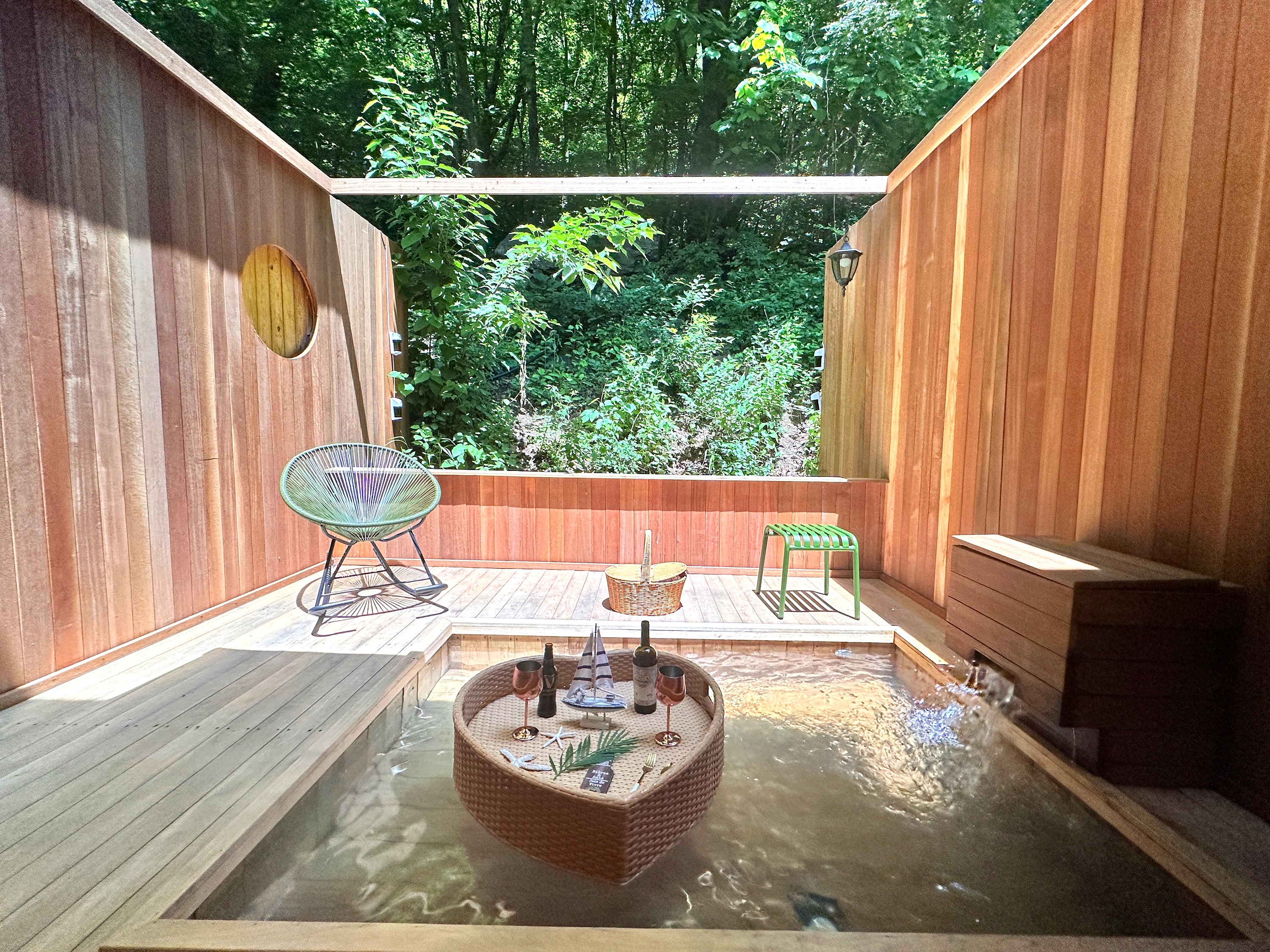숲을 조망하며 노천 스파를 즐기는 아늑한 1.5룸 객실