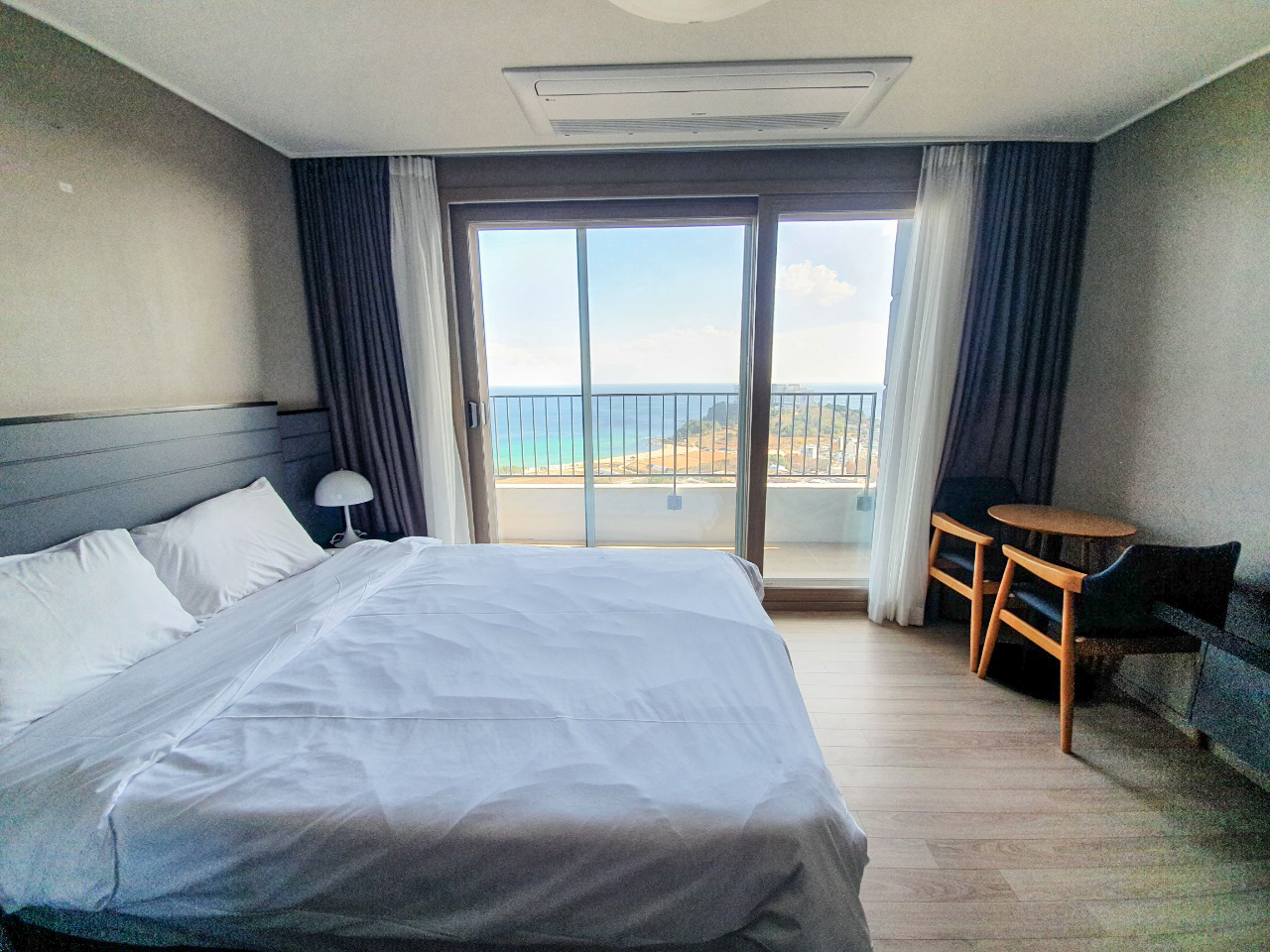 탁 트인 동해 파노라마 오션뷰와 마운틴뷰를 자랑하는 넓은 테라스 1.5룸 스위트룸 (취사 가능, 최대 3인)