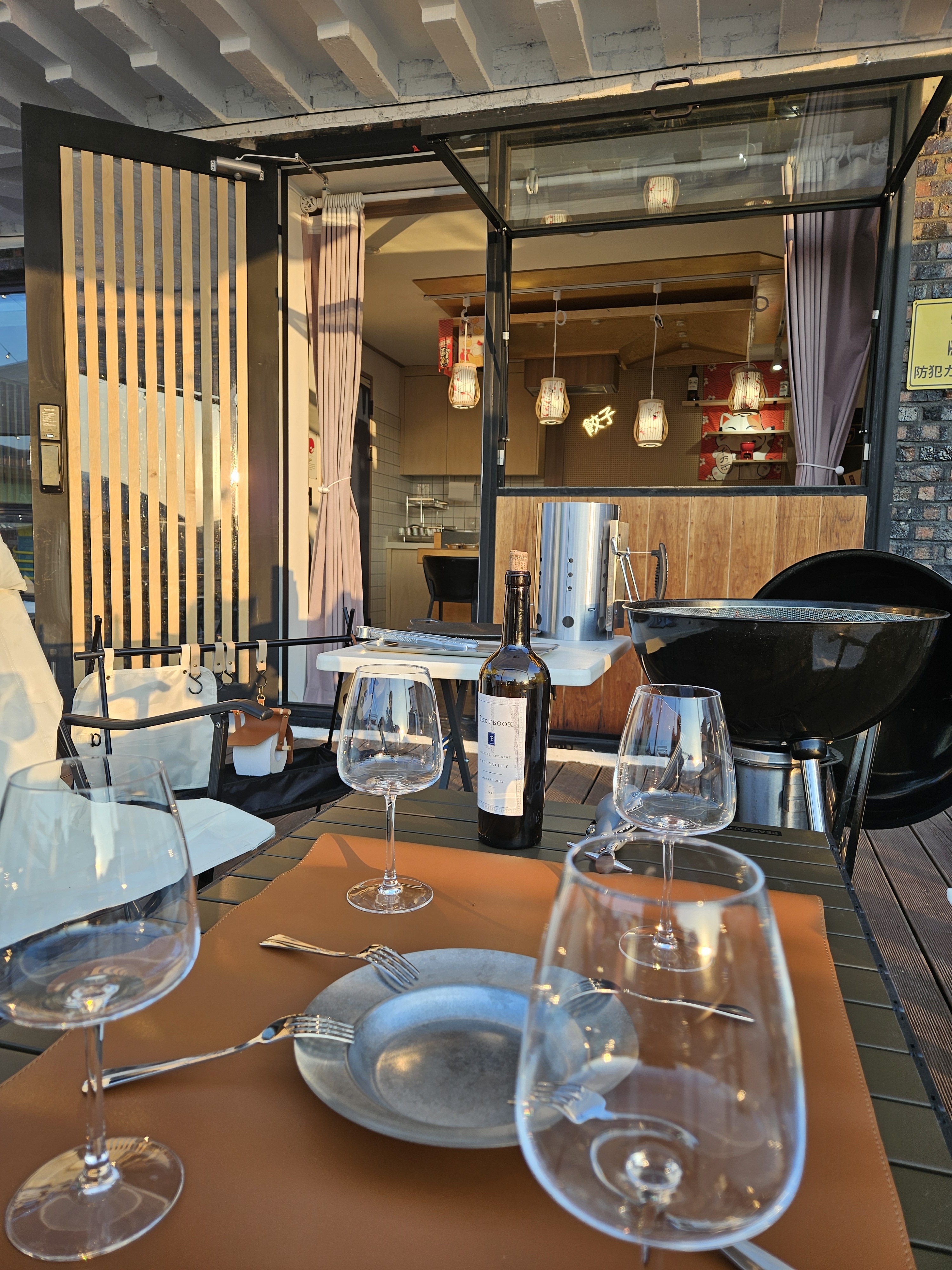 석양 아래 바베큐와 노천탕을 즐기는 2인 런치 파티룸