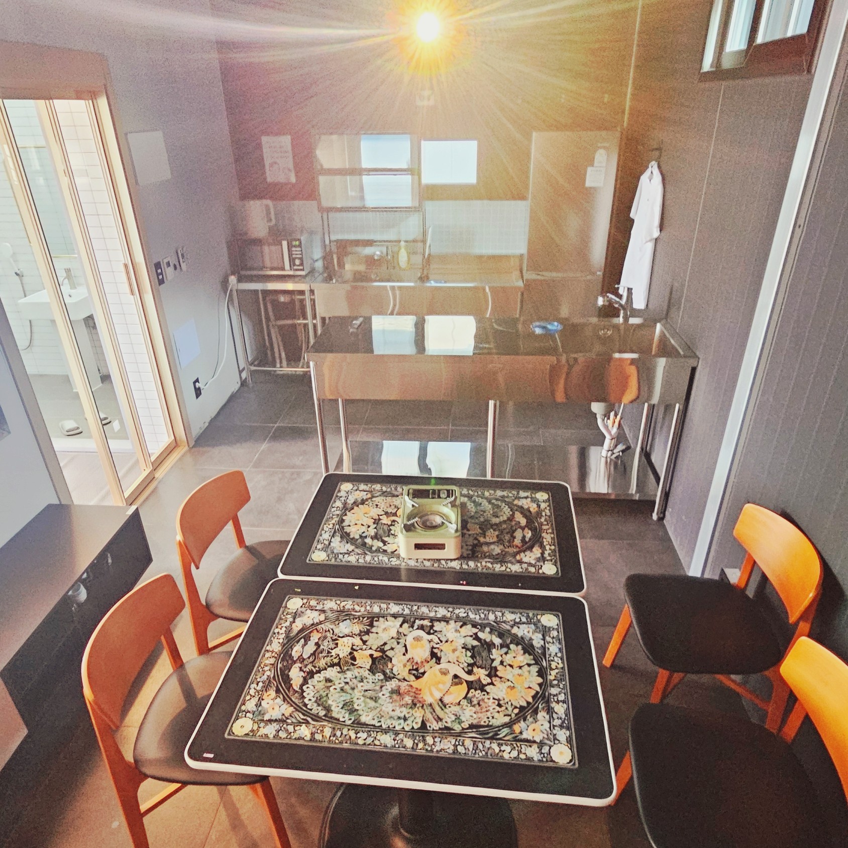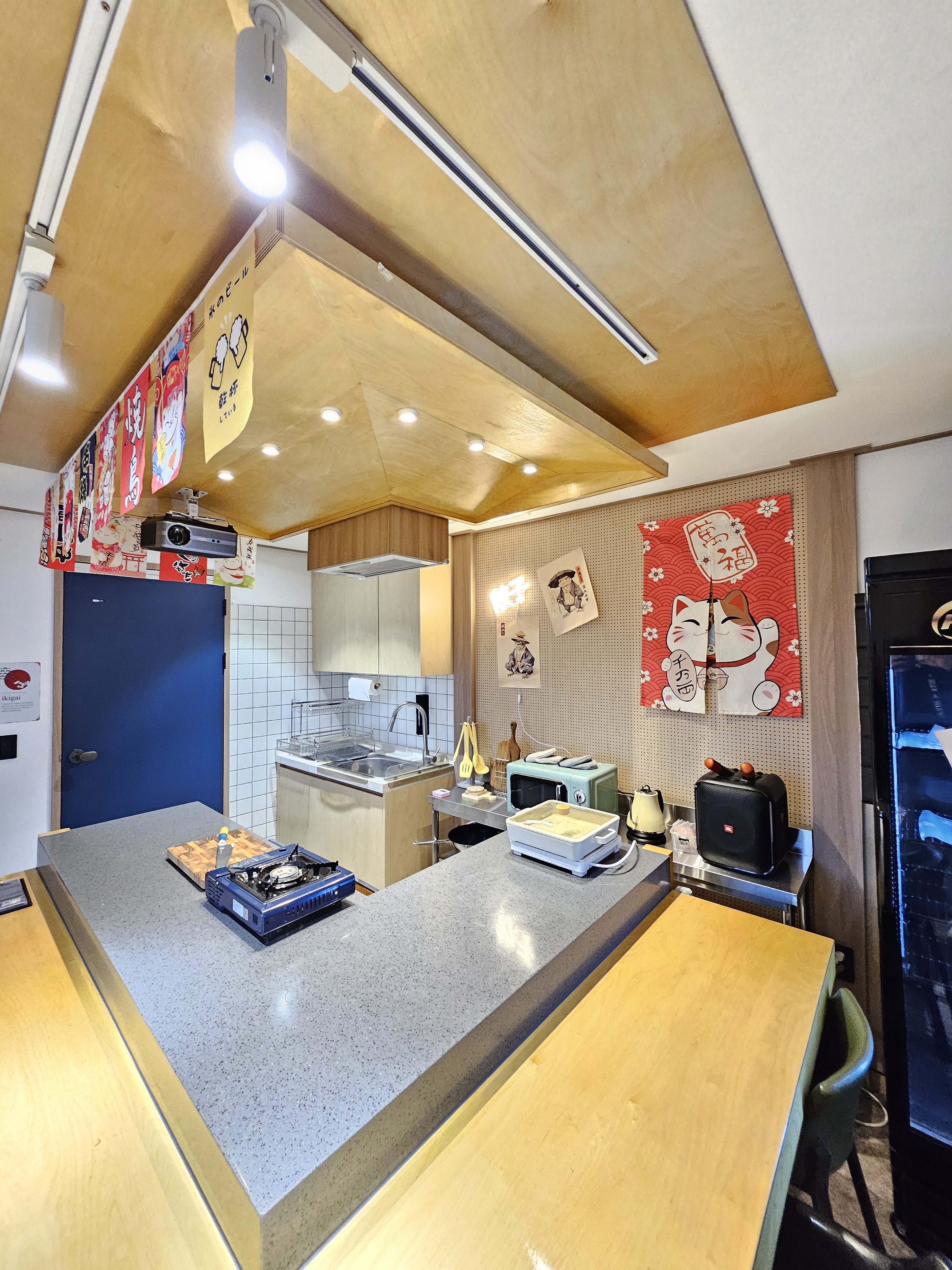 라멘 전문점 컨셉 글램핑, 개별 히노끼탕과 온천 수영장