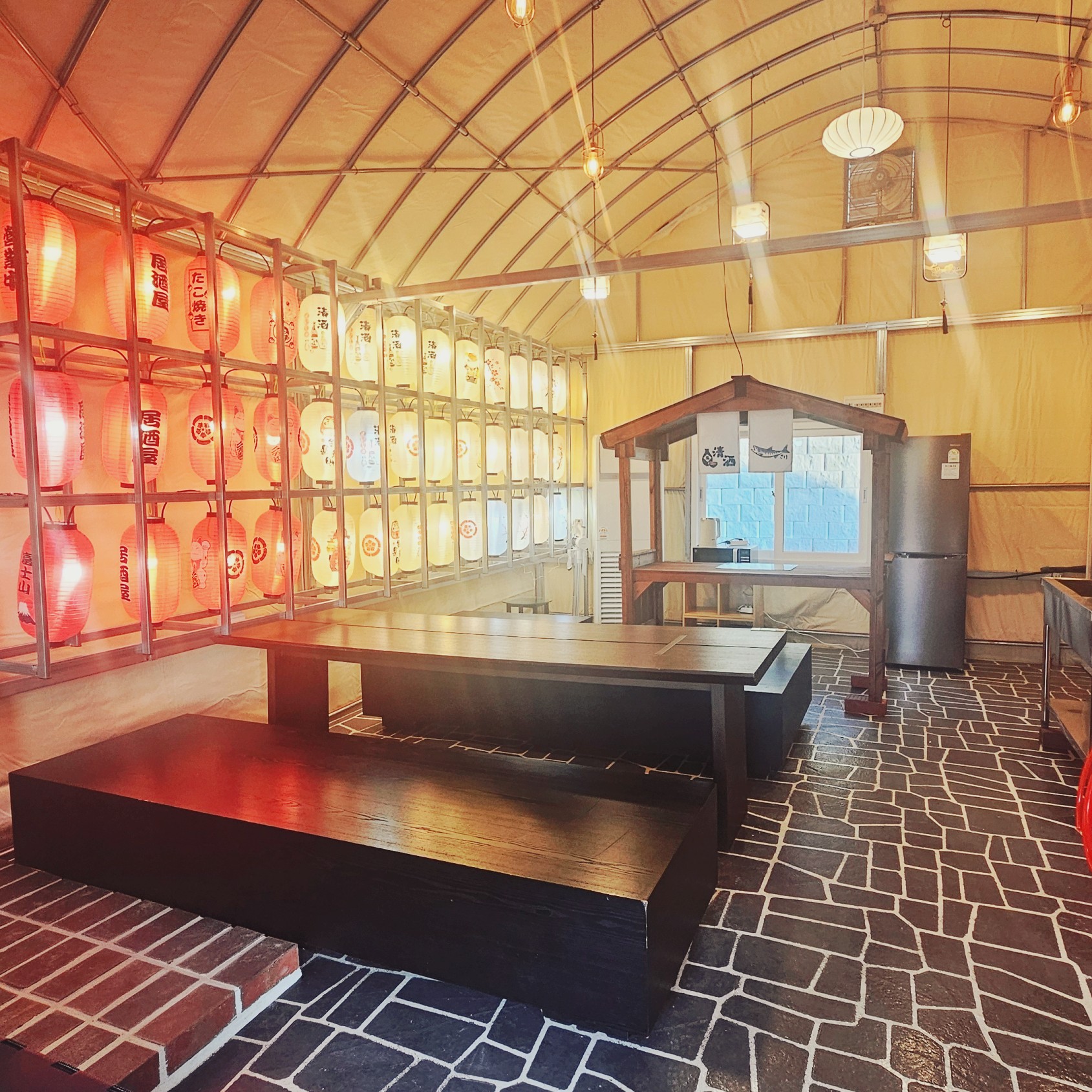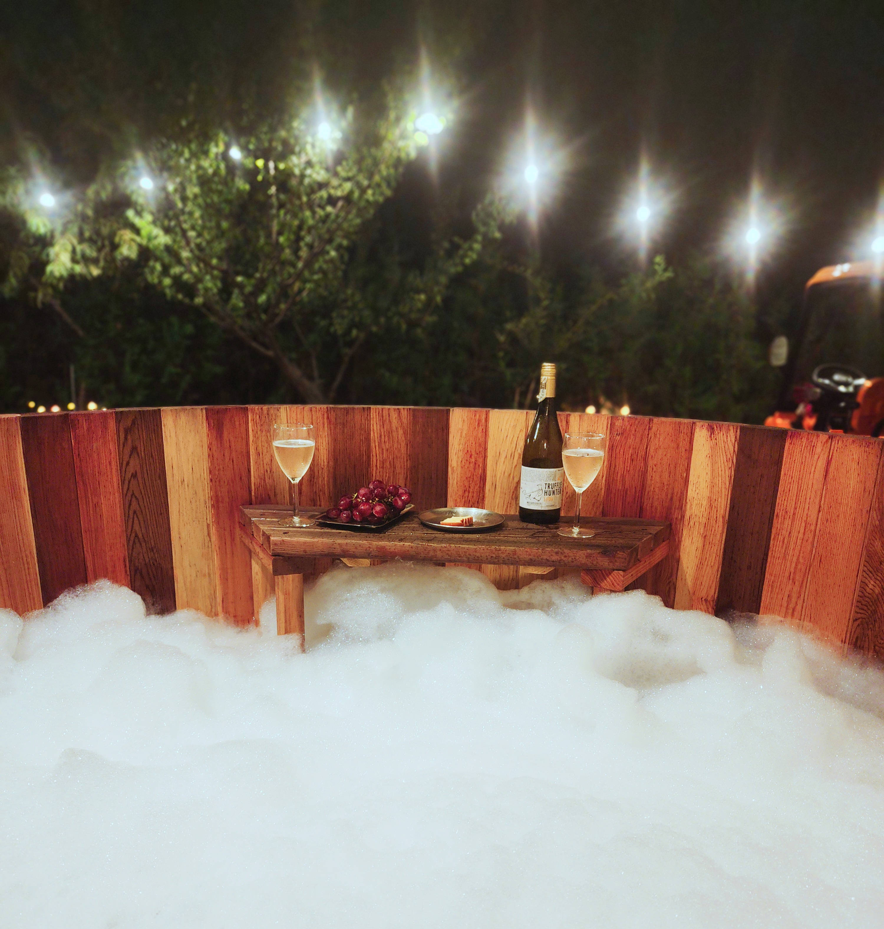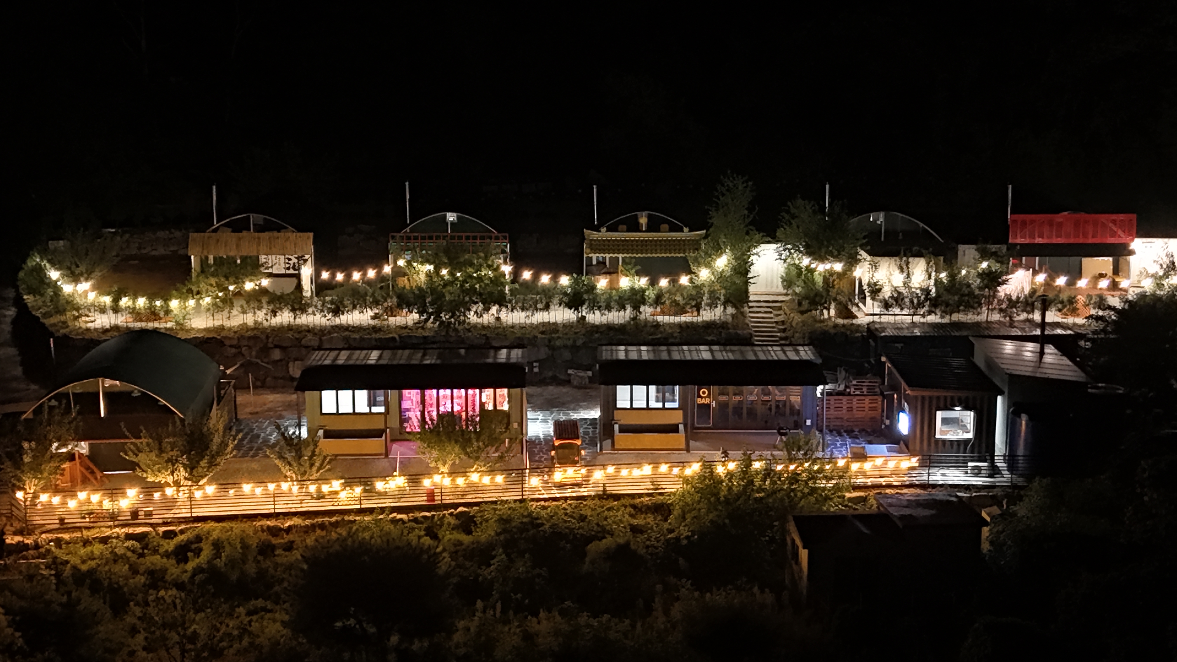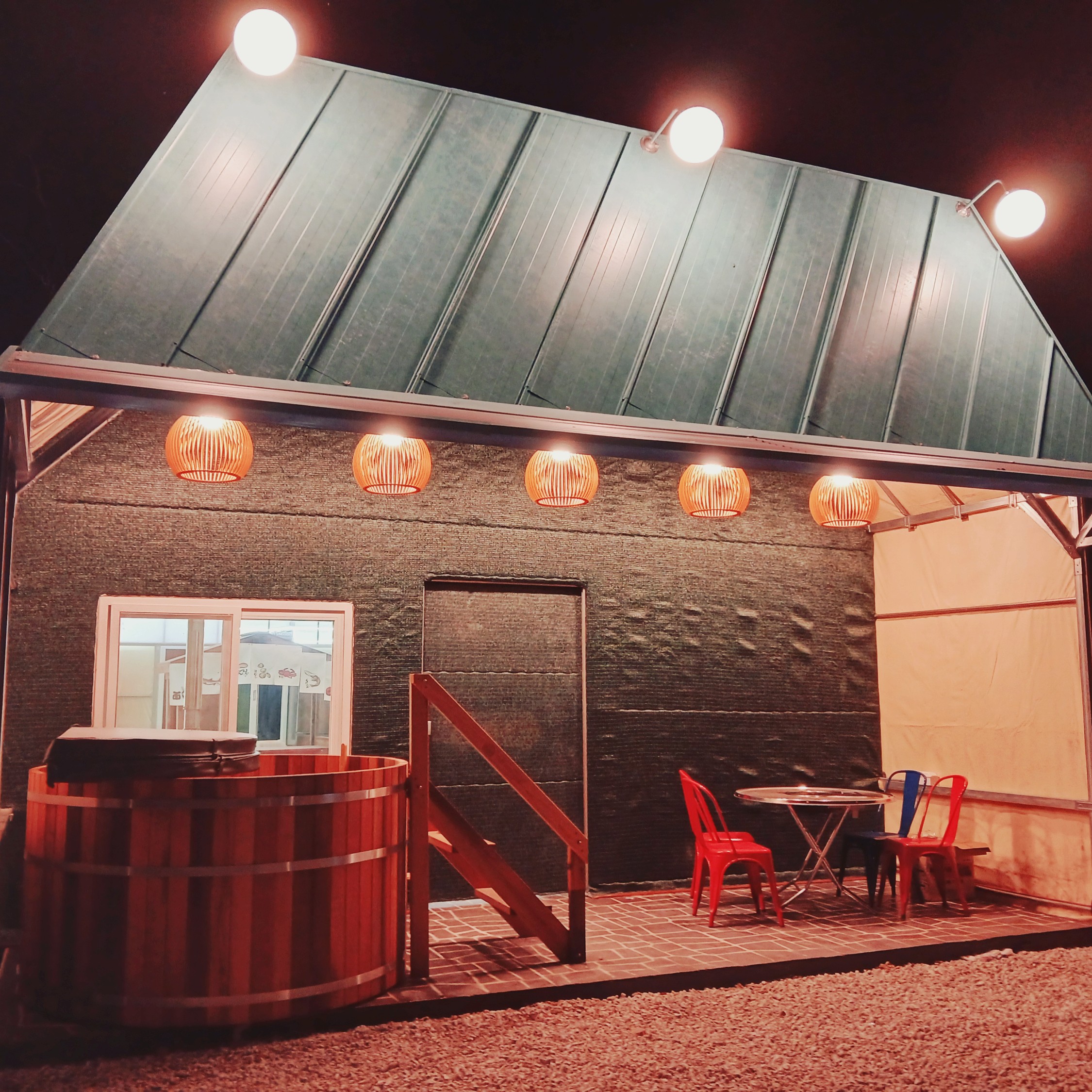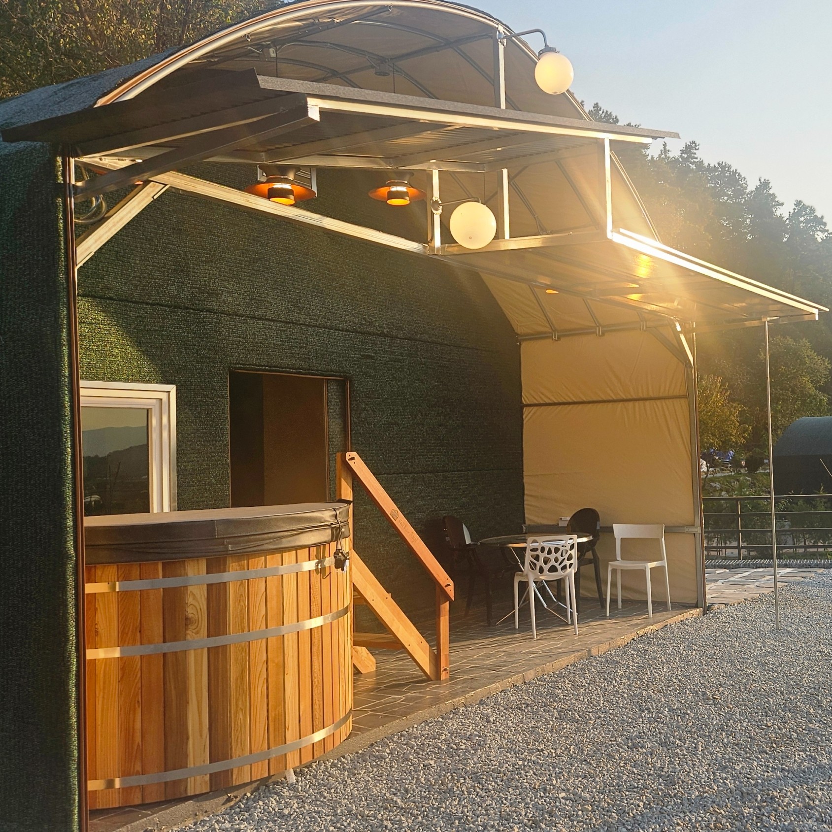포장마차 감성 글램핑, 개별 히노끼탕과 야외 온천 수영장
