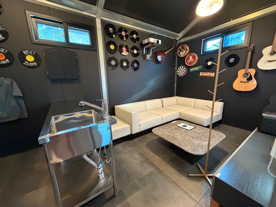 고깃집 컨셉 파티룸과 실내 온천탕, 캠핑카 도킹 가능한 자쿠지 캠핑