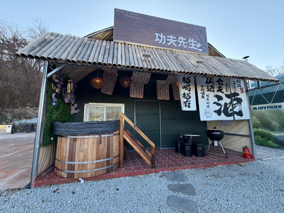 딤섬 전문점 컨셉 글램핑, 개별 히노끼탕과 온천 수영장