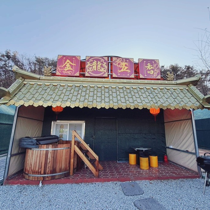 중식당 컨셉 글램핑 파티룸, 프라이빗 히노끼탕과 온수풀