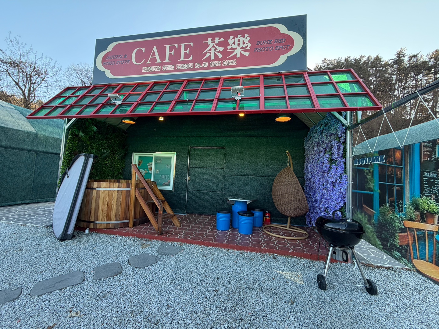 홍콩 찻집 컨셉 글램핑, 프라이빗 히노끼탕과 온수풀
