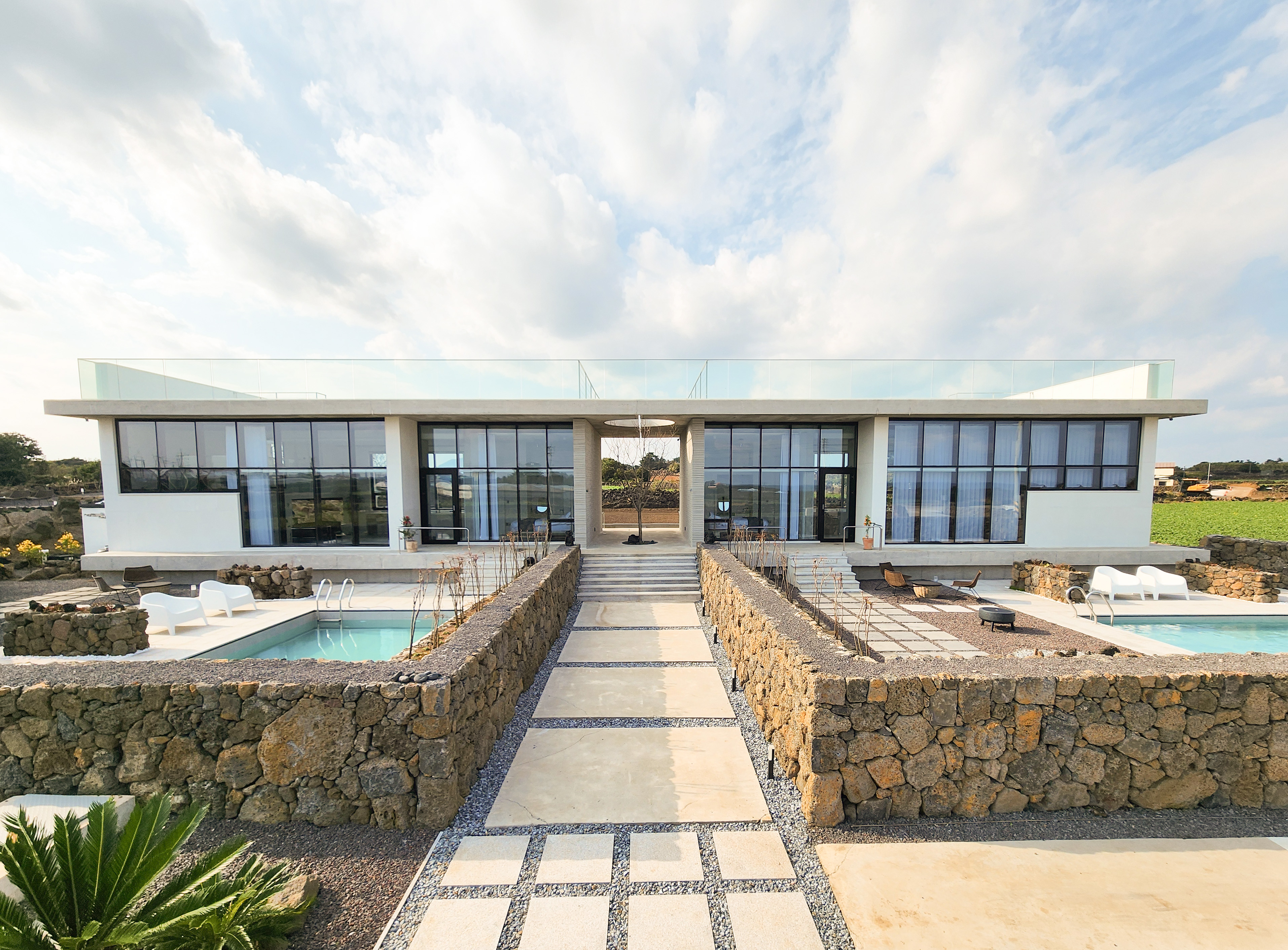 SUITE A+ SUITE B 2개의 객실모두사용 [객실 유형] [A동] : 거실+주방+침대룸(퀸1)+복층온돌룸(쇼파베드1,이불요세트)+화장실1+자쿠지+옥상(루프탑) +야외 수영장 [B동] : 거실+주방+침대룸(퀸1)+복층온돌룸(쇼파베드1,이불요세트)+화장실1+자쿠지+옥상(루프탑) +야외 수영장 1. 안녕하세요! 대가족이나 2쌍의 가족,커플이 함께 머물기에 최적화된 공간 윈도우라운지를 소개해요. 같은지붕아래 27평규모의 독채풀빌라 2동을 각기 독립적으로 사용하면서도,함께 모여 일행들과 행복한 시간을 보낼수 있는 장소입니다. 각 동 내부는 동일한 구조로 침실(침대방) , 복층침실(온돌방),거실&주방,화장실,자쿠지(무료),루프탑(내부전용계단)으로 구성되어있고 외부에도 각 동마다 전용 3.3m*6m 온수 수영장 있어요. *냉수 수영장 이용은 무료 / 온수수영장 이용은 유료로 이용할수 있어요. 2.윈도우라운지 대지는 1000평 이예요 건물과 수영장 200평/천연돌산정원100평/유채꽃밭 700평으로 구성되어 있는데 이 전체 공간을 오롯히 한팀만 사용할수 있어, 타인에게 방해받지 않고 편안하게 지낼 수 있습니다. 가족이나 일행들과 놀고싶을 땐 함께 정원에서 수영하고 불멍하고 바베큐파티하고 쉴때는 조용한 공간에서 각자의 시간도 가질수 있는 장소입니다. 3.모든공간이 포토존입니다.